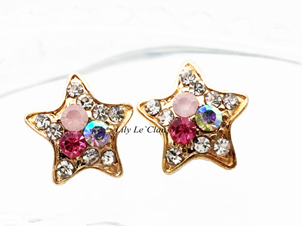 きらきら可愛らしい星型ピアスは水晶の配置をこだわり受ける光の屈折を最大限に する為の配置構成を繰り返し行い正しく反射し、小振りなスターは軽やかな風合いで 大人可愛いを演出します。 材質 水晶 合金 より強度に煌びやかにする為コーティングを施しております。