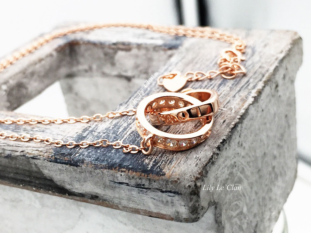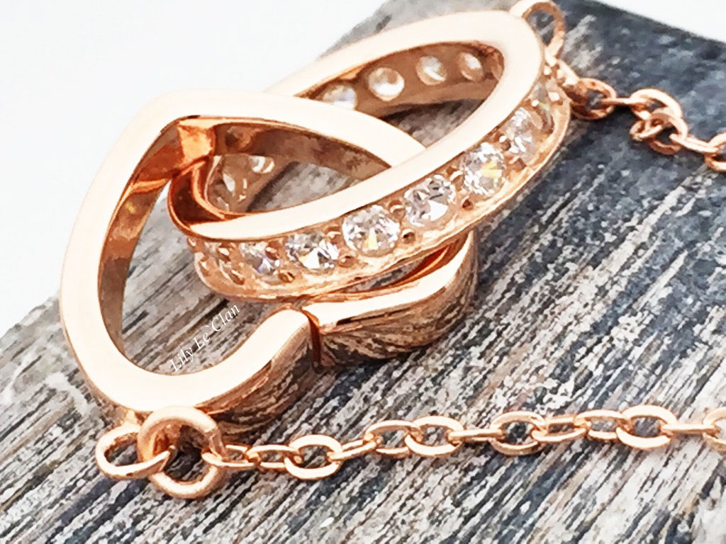 ハートのモチーフはすべての女性に愛され続けリングと 重なり合い離れない姿は美しい リングのジルコニアを一石一石丁寧にあしらい小振りで上品。 わずかな動きで光の屈折による乱反射は飽きが来ず魅力的です。 宝石 CZキュービックジルコニア 材質 S925スターリングシルバー 表面はより美しく保持する為にコーティングを施しております。 カラー ピンクゴールド チェーン長さ 40cm+アジャスター5cm