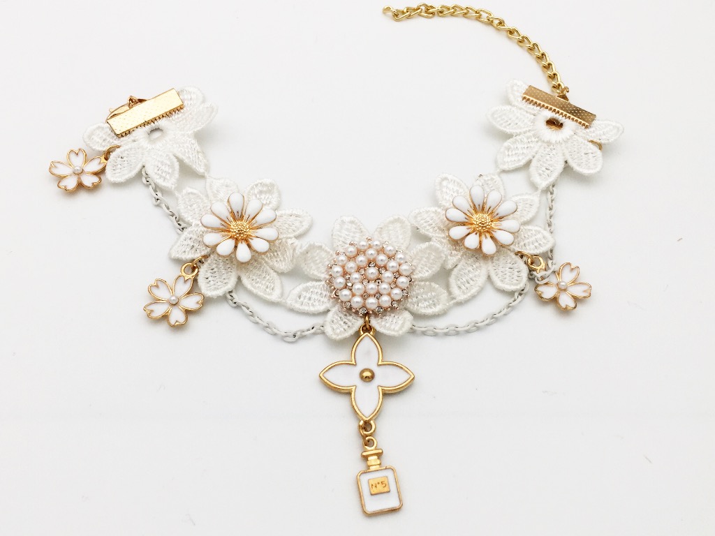 脚首にナチュラルになじみ、咲き誇る花は日の光を浴びるとき 今までじっとしていた花たちが華やかにかつ煌びやかに女性の魅力を ふんだんにだし華麗にそしてキュートに踊りだすのです。 材質 ホワイト レース 合金 人工真珠 ラインストーン 重量 10g サイズ 長さ19cm+アジャスター5cm カラー ホワイト